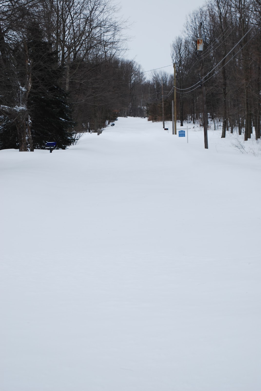 This was what my road looked like last week after 3 feet of snow fell in Connecticut. I love the way the trees look in their winter white, but it's getting a little old. The snow, that is. It's pretty at first, but now a week later, melting and refreezing, dirt thrown from the snowblower, the picture postcard charm is gone.