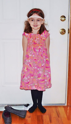 When I take Peri to preschool, we're usually met with giggles from parents and odd looks from her peers, but everyone pretty much expects that Peri dresses to the beat of her own drum. They're usually tickled pink by her choices. And speaking of pink, no outfit is complete without it. Also, her idea of color coordination is usually, "Look, my shirt is pink and my skirt has pink." Never mind that they're completely different colors and shades of pink; if it's classified as pink, they match.