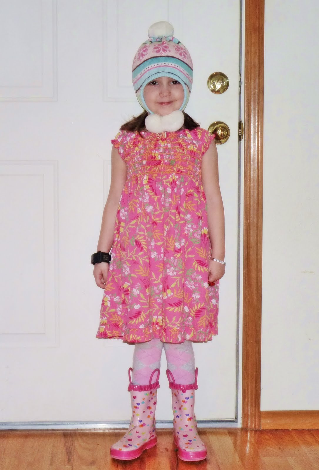 Did you notice this is her favorite dress? Keep in mind, she wore this outfit when it was sunny and warm outside.