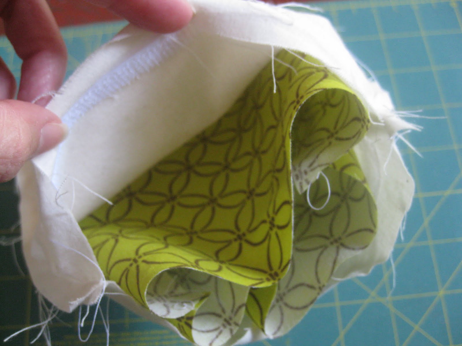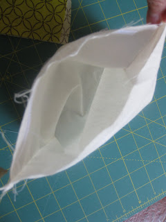 Now I put the 2 pieces of velcro together, "closing" the lining and sew up each side (on the wrong side of the fabric) now you have a pouch.