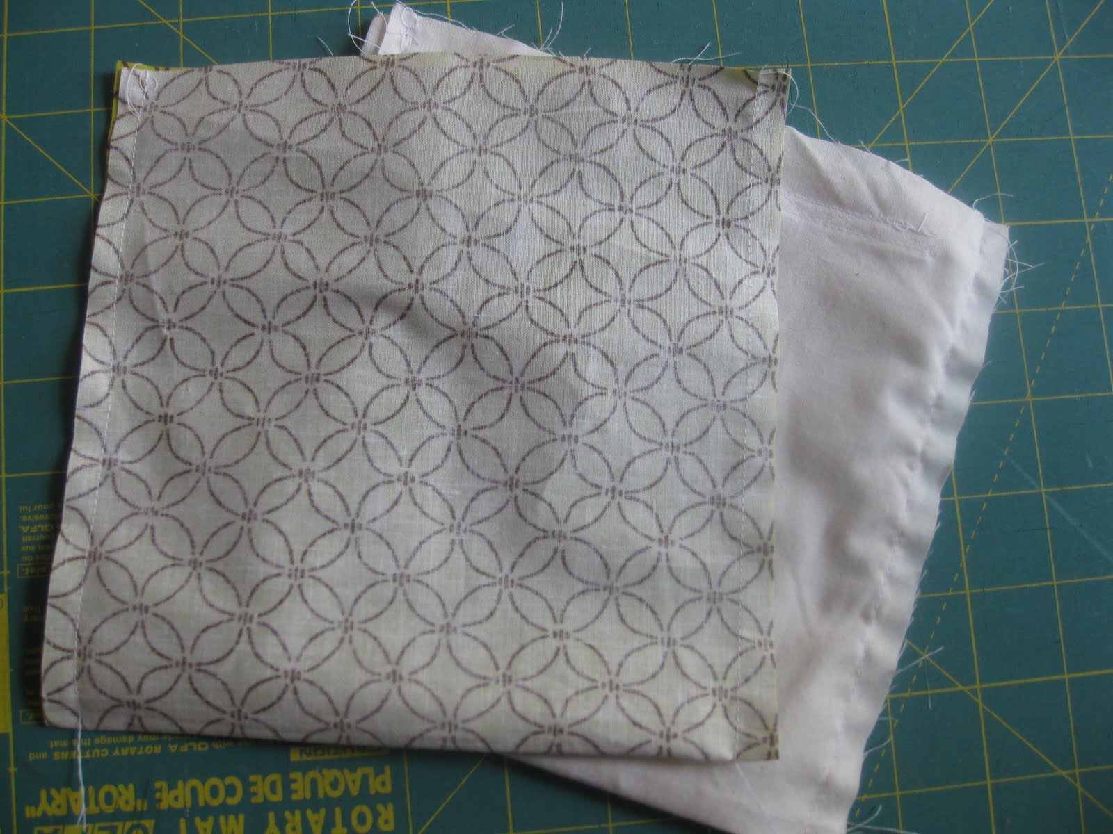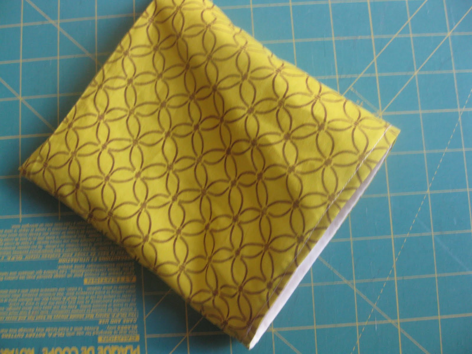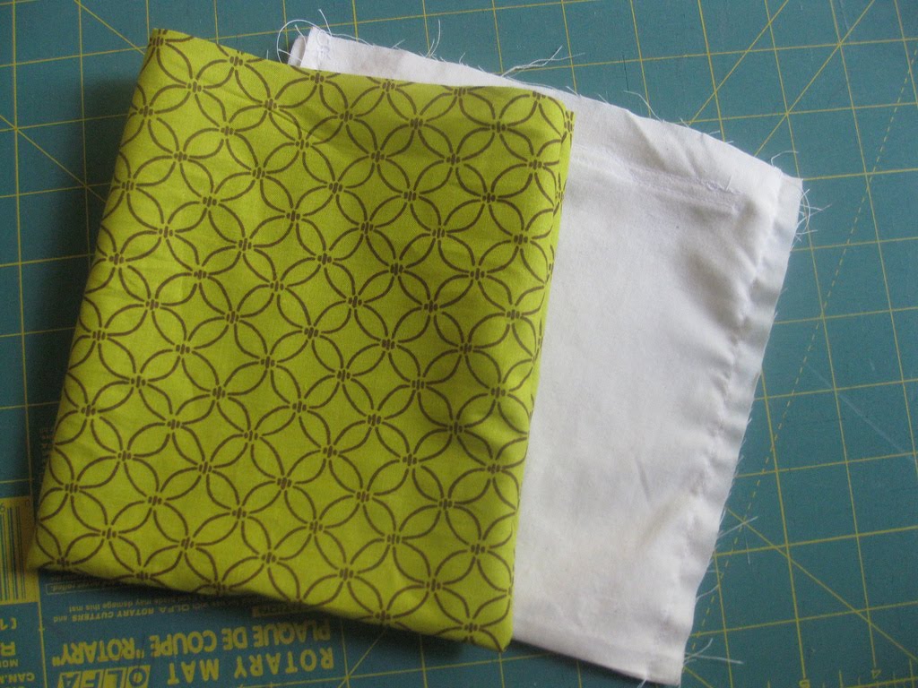Ok, here goes. First you need to figure out what size you want your bag. I just measured a sandwich bag and added 1 inch to the measurements for seam allowances. Or just pick a number! How about 6" high by 6" wide? Super easy! SO, I take my outer fabric and cut it 13" long (because you want it twice the finished length of your bag plus an inch) by 7" wide. If you are doing a lining, then you want to cut a lining piece the same size. (now if having the fabric on the back of your bag be upside down will bother you, then you can cut the fabric in half down the middle and sew them back together (right sides together) so that the fabrics will both be right side up)