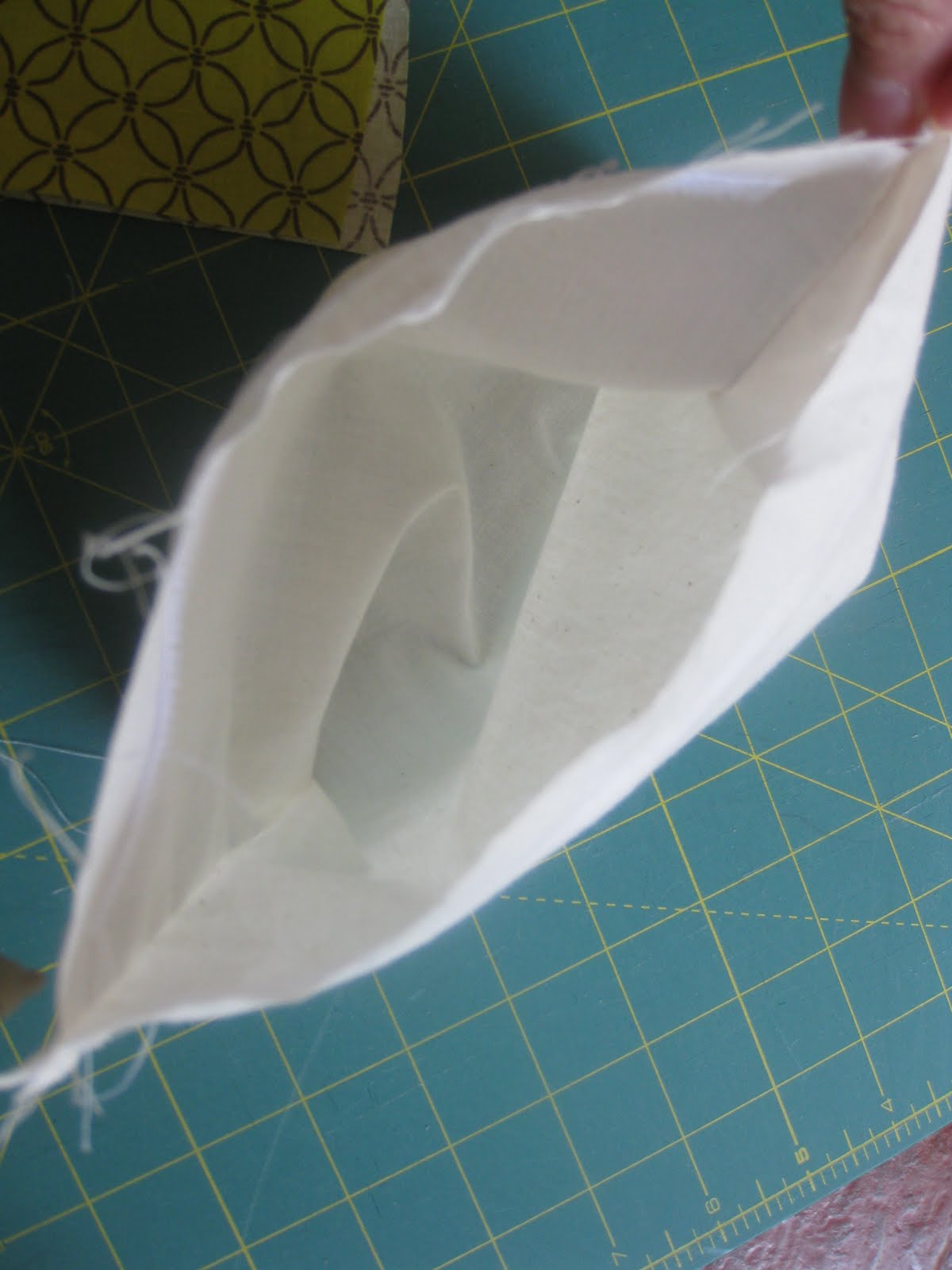 Next take your outer fabric and fold it in half, wrong sides facing you just like the lining and sew up the sides. Now you have 2 pouches :)